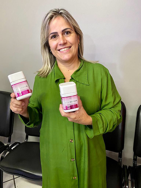 “Com três filhos e uma rotina intensa, não podia me dar ao luxo de ficar indisposta. O suplemento New Woman foi essencial na minha vida. Os calores diminuíram e minha energia voltou. Me sinto mais eu mesma.”